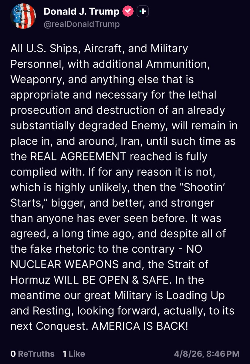 >New statement from the Speaker of Iran’s Parliament: Statement on the Violation of Three Key Clauses of the 10-Point Proposal (Agreed Framework) Before the Start of Negotiations. The deep historical distrust we hold toward the United States stems from its repeated violations of all forms of commitments — a pattern that has regrettably been repeated once again. As the President of the United States has clearly stated, the Islamic Republic of Iran's 10-Point Proposal is a "workable basis on which to negotiate and the main framework for these talks. However, three clauses of this proposal have already been violated: 1. Non-compliance with the first clause. Regarding the ceasefire in Lebanon- a commitment that Prime Minister Shehbaz Sharif explicitly referred to and declared as "an immediate ceasefire everywhere, including Lebanon and other regions, effective immediately.". 2. Violation of Iran's airspace.The entry of an intruding drone into Iranian airspace, which was destroyed in the city of Lar in Fars Province, constitutes a clear violation of the clause prohibiting any further breach of Iran's airspace. 3. Denial of Iran's right to enrichment