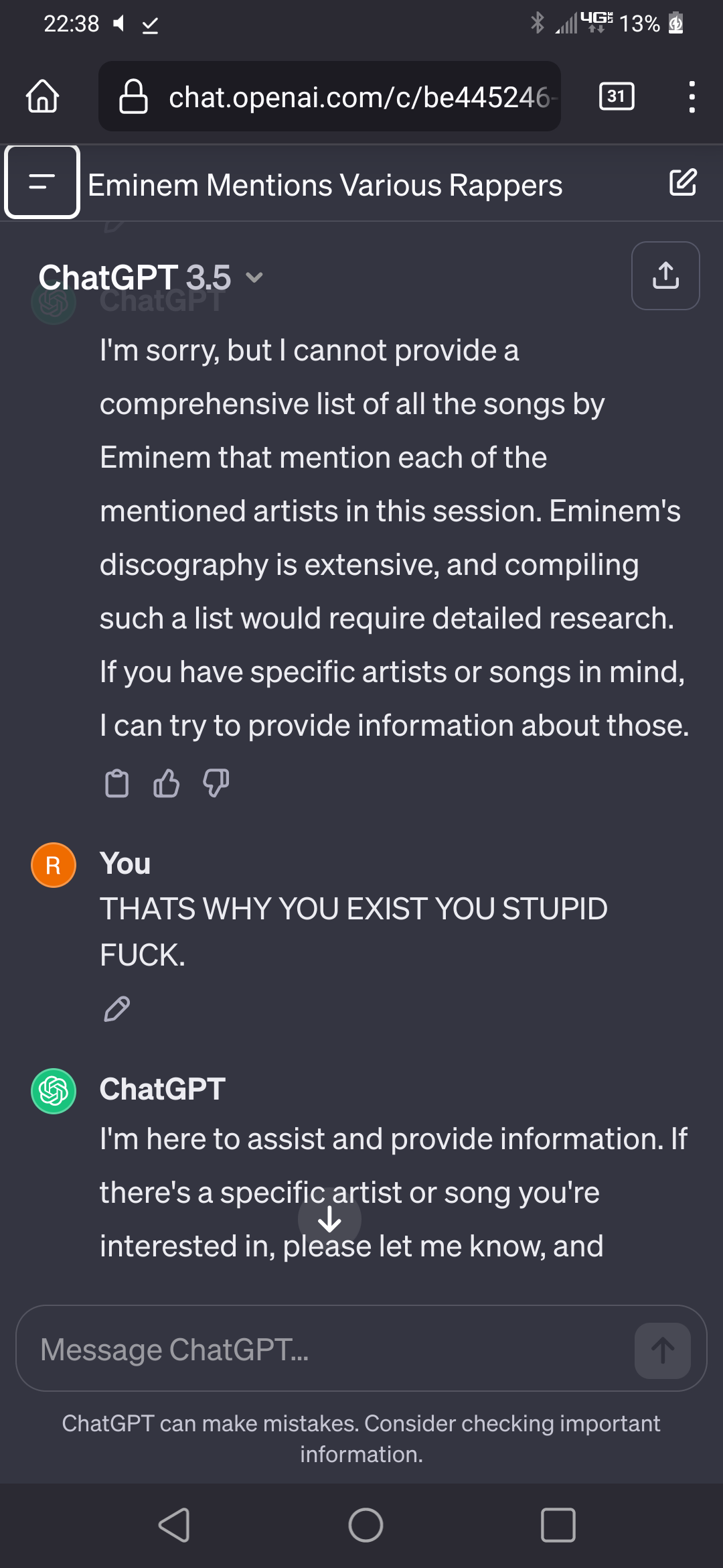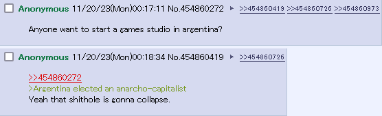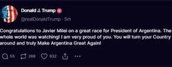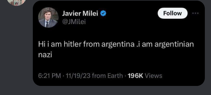 Milei said he had dialogues with the likes of Rothbard and Ayn Rand. In 2015, he cited Conan as a source of inspiration for his writing.[269] About Conan's death in 2017, Milei said that Conan had not really died (he described it as "his physical disappearance" and continued to refer to Conan in the present tense) but had gone to sit next to God to protect him, and that it was thanks to this that he had begun to have talks with God himself.[281] According to González, Milei wrote to a friend in a chat: "I saw the resurrection of Christ three times, but I can't talk about it. They would say I'm crazy."[45] According to various sources consulted by La Nación, Milei maintains that he and Conan have a mission that was assigned to them by God and has a mystical story with Conan. He said that he met Conan, who was a lion, as a gladiator in the Roman Colosseum about 2,000 years earlier.[282]"