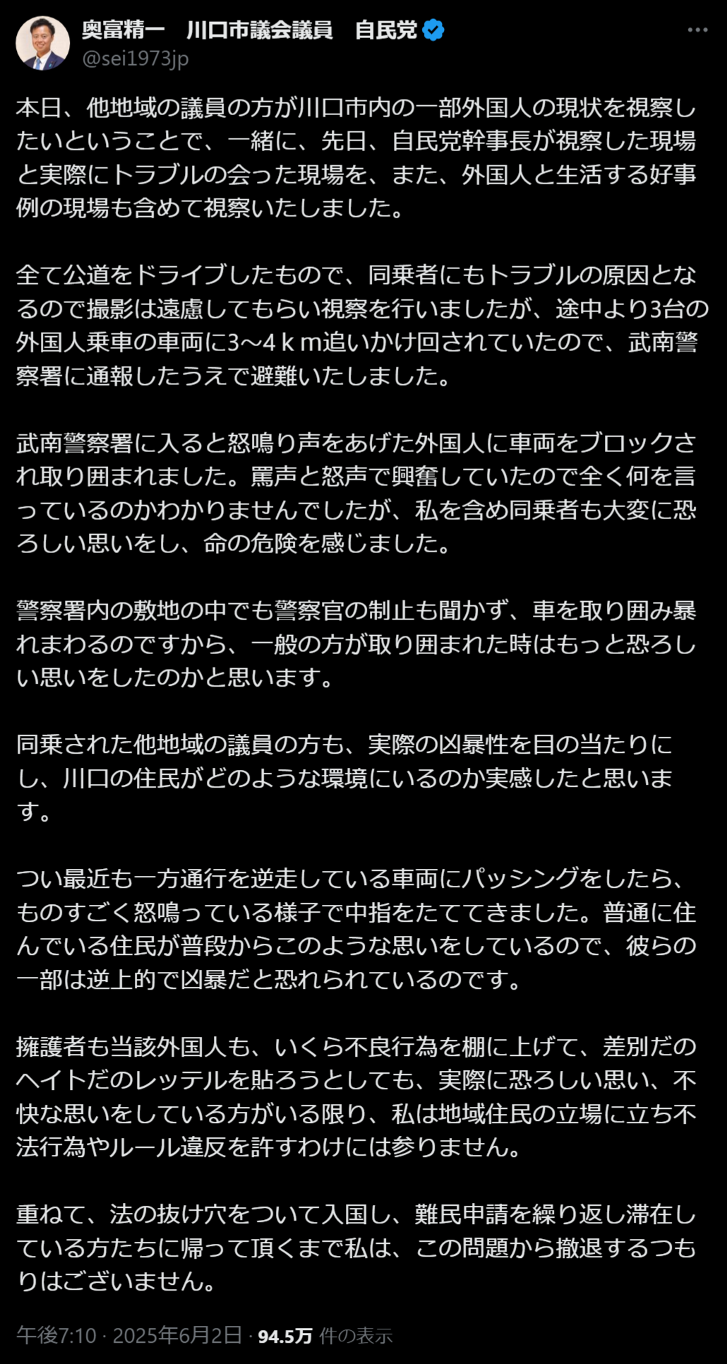 No matter how much the advocates and the foreigners concerned try to shelve the bad behavior and label it as discrimination or hate, as long as there are people who actually feel horrible and uncomfortable, I cannot stand in the shoes of local residents and allow illegal behavior and rule breaking to continue.